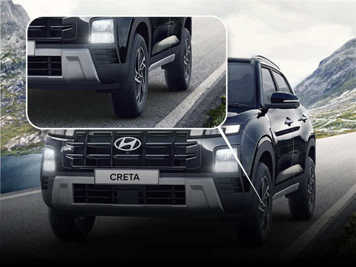 Lower-end models such as E, EX, and S are equipped with 205/65 R16 tyres and provide comfortable driving and effective urban use. Going up the range, the SX, SX (O), and the Knight Editions are fitted with 215/60 R17 tyres; they are more stable and offer sharper control when cornering. Hyundai has also introduced the latest N Line and SX (O) Turbo DCT trims, which come with 215/55 R18 tyres alongside a fancy diamond-cut alloy wheel design, making the Creta look more premium and sporty.