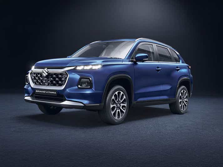 The Maruti Grand Vitara is a popular premium mid-size SUV. It offers modern families a comfortable and practical ride. Buyers can select from three distinct powertrain options. You can pick petrol, factory-fitted CNG, or a strong hybrid. The mild-hybrid petrol engine has manual and automatic transmission choices. The CNG version comes only with a five-speed manual gearbox. The strong hybrid model features an advanced e-CVT automatic transmission.
