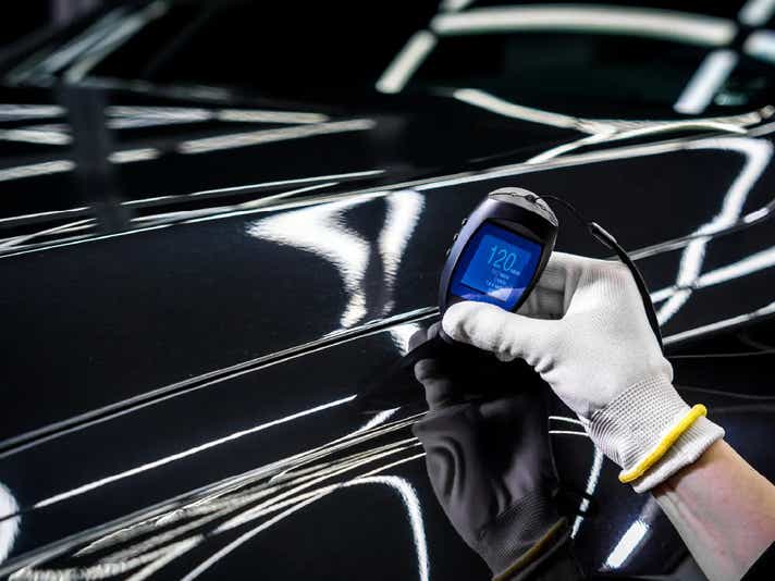 Paint thickness simply refers to how thick the layers of paint are on a car's surface. Every vehicle that rolls out of a factory has a standard thickness of paint. The paint thickness, which lies between 100 and 180 microns, is governed by the manufacturer for a particular car model. That includes the base coat, colour coat, and clear coat. It’s uniform across all panels unless something unusual has happened.