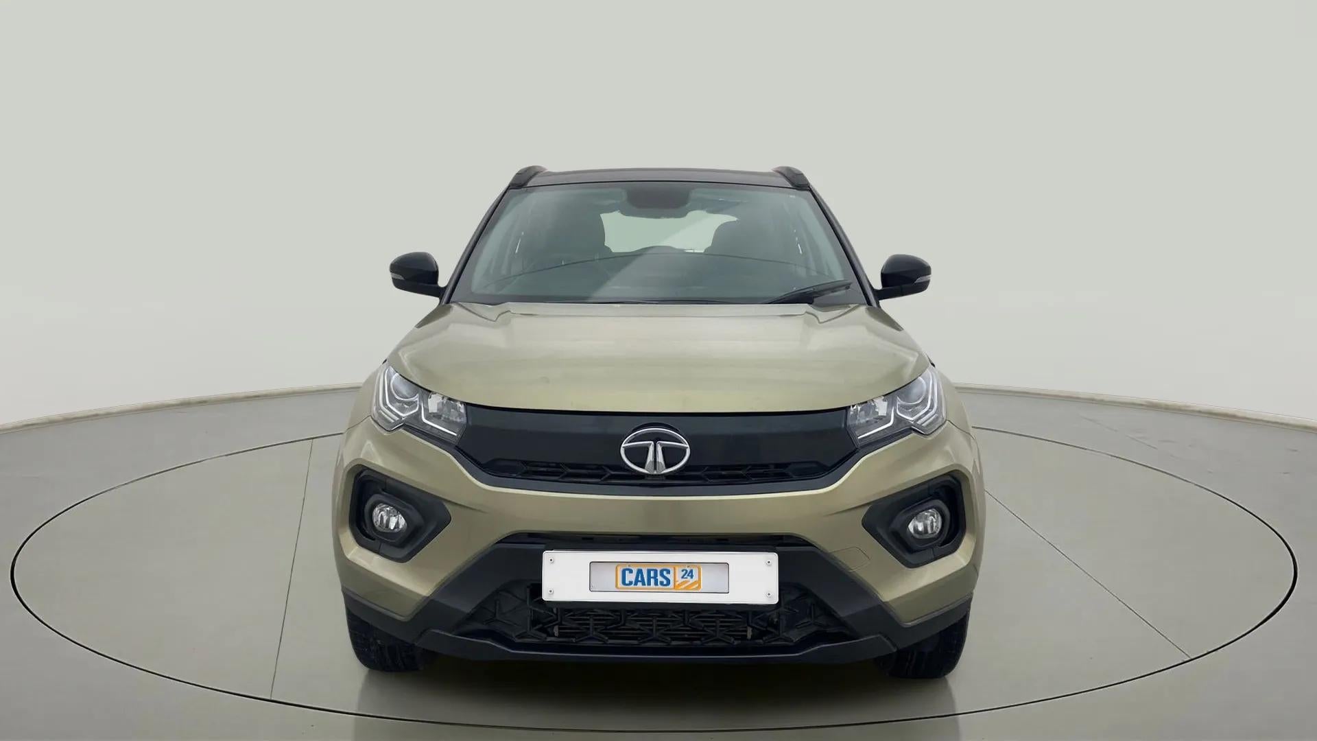 Front angle of Tata Nexon 2017-2023 in Grassland Beige