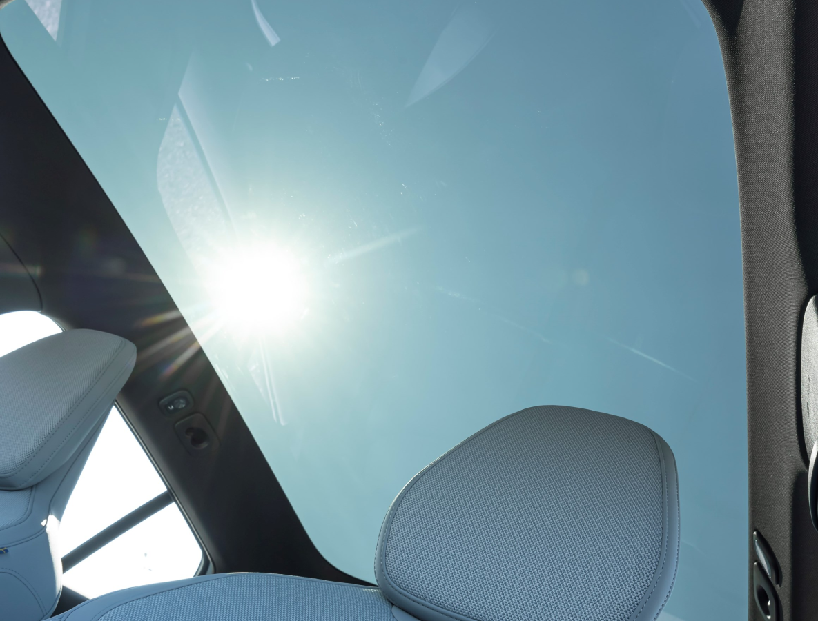 Volvo EX30 panoramic glass roof interior view