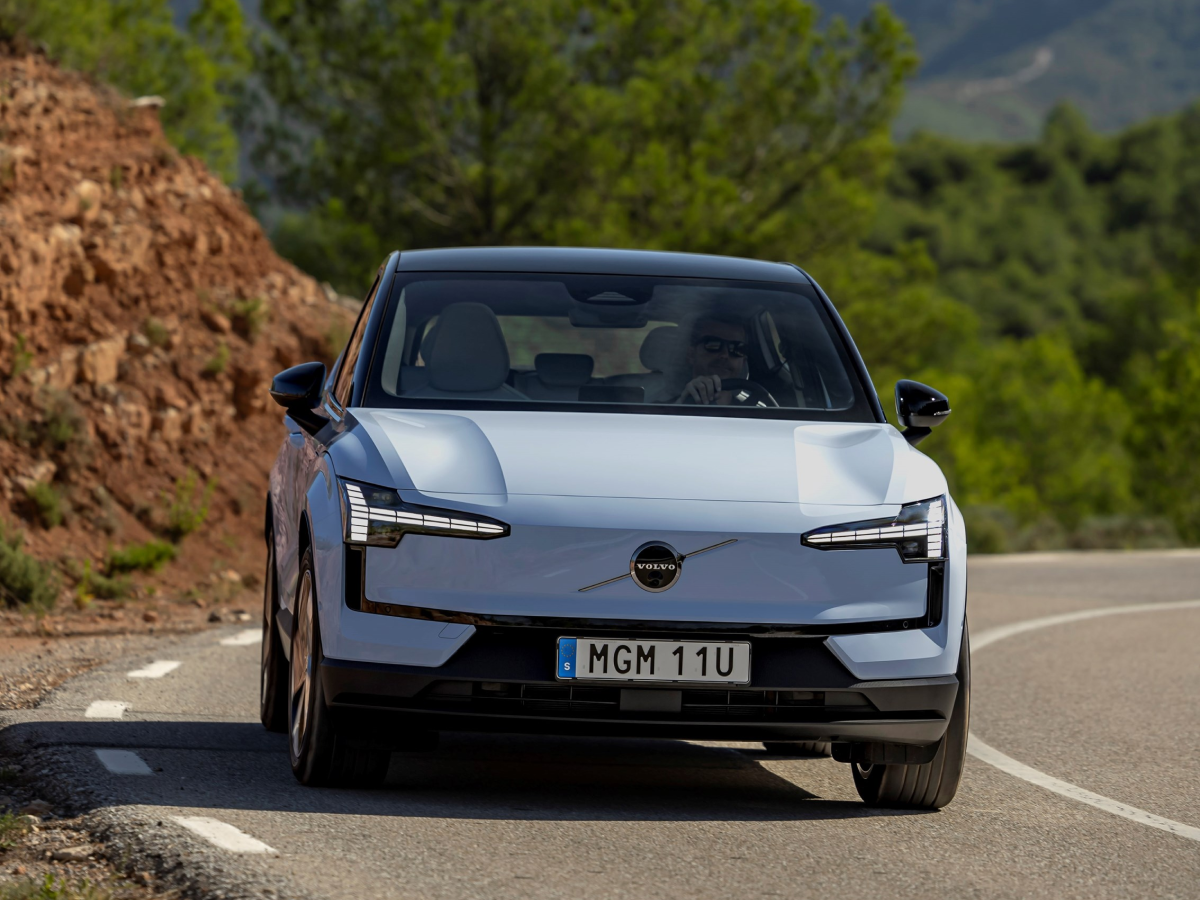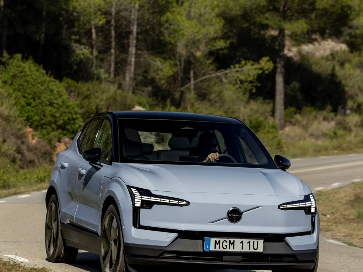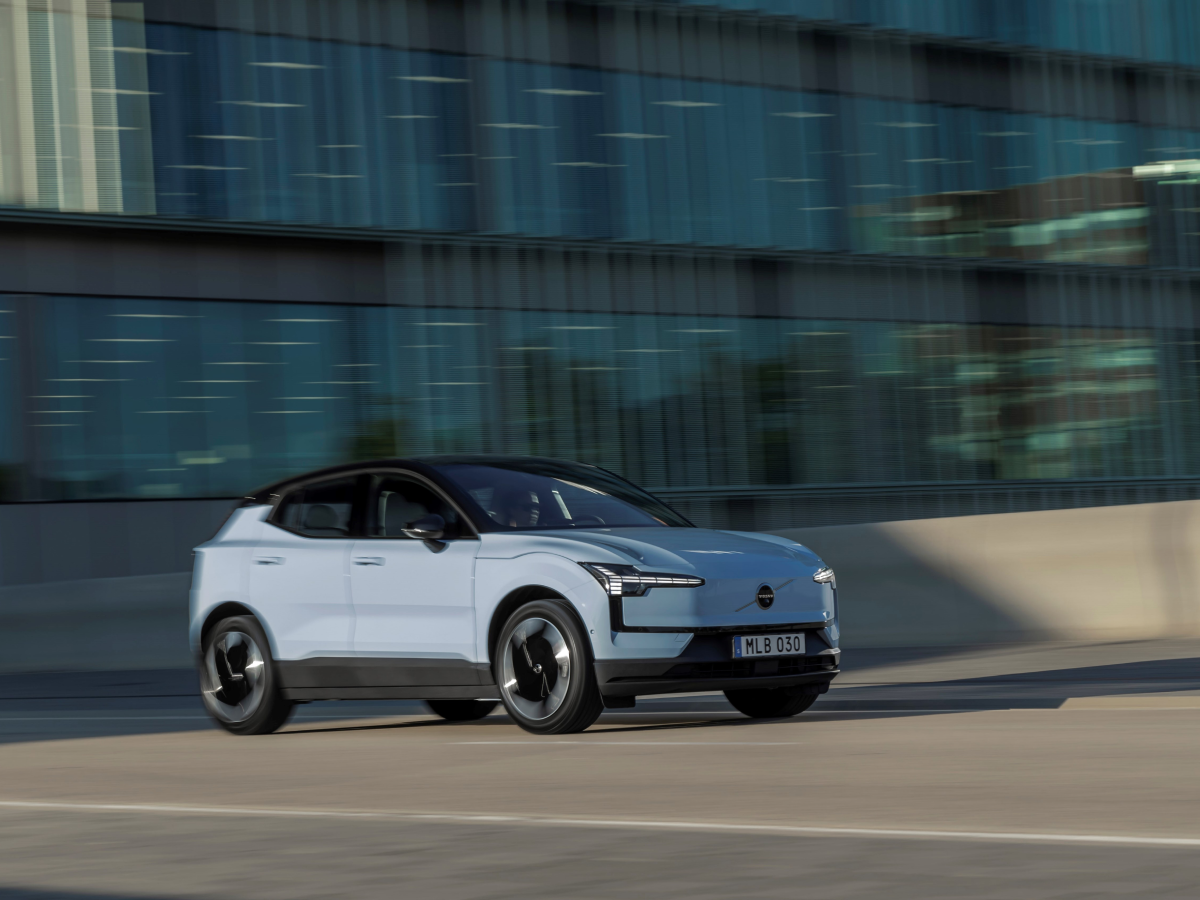 Side profile of the Volvo EX30 in action