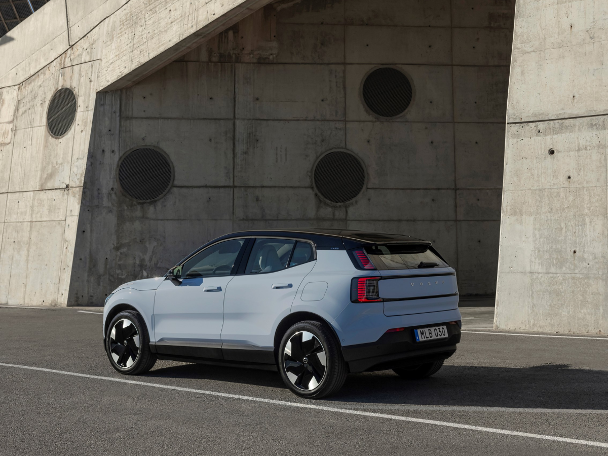 Rear three-quarter view of Volvo EX30