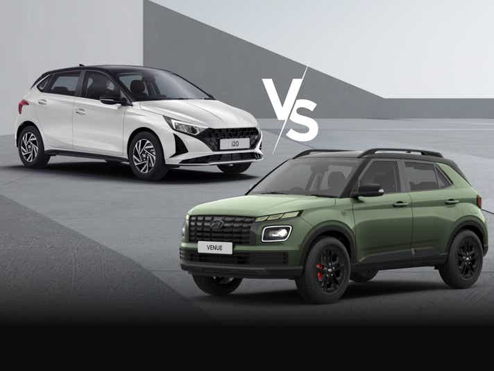 | Purchase price | Hyundai i20 - ₹7 lakh-11.2 lakh ex-showroom | Hyundai i20 - ₹7.86 - 12.07 Lakh (2020-2023 models) | Hyundai Venue - ₹7.9 lakh-13.6 lakh ex-showroom | Hyundai Venue - ₹ 8.30 - ₹ 14.18 Lakh (2019-2023 models) |