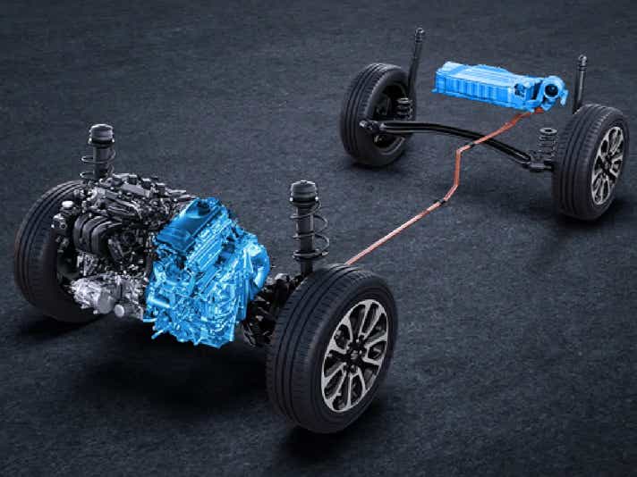 - Seamlessly switches between petrol engine and electric motor
