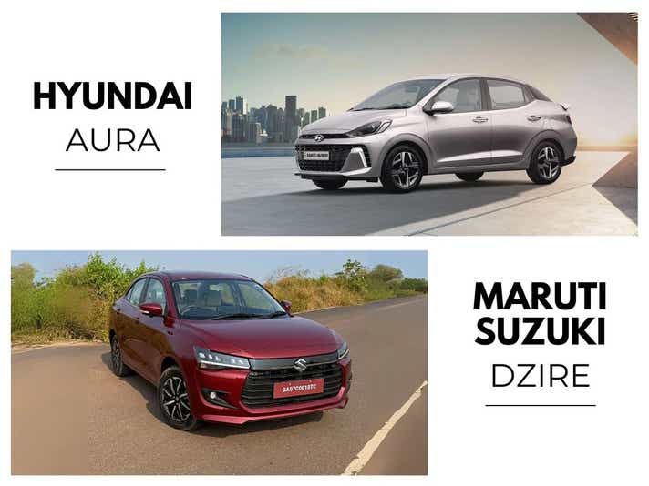 The Hyundai Aura is priced between Rs 6.48 lakh and Rs 9.04 lakh. The Maruti Suzuki Dzire price in India ranges from Rs 6.79 lakh to Rs 10.14 lakh. CNG variants of the Dzire start from Rs 8.74 lakh and those of the Aura begin from Rs 7.48 lakh. All prices are ex-showroom, Delhi. Which one would you prefer? Let us know!